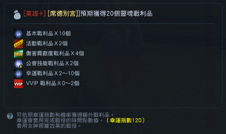 在英雄+ 模式中,最多可獲得 2 個「VIP/VVIP」的戰利品,每個均以 30% 機率獲得。